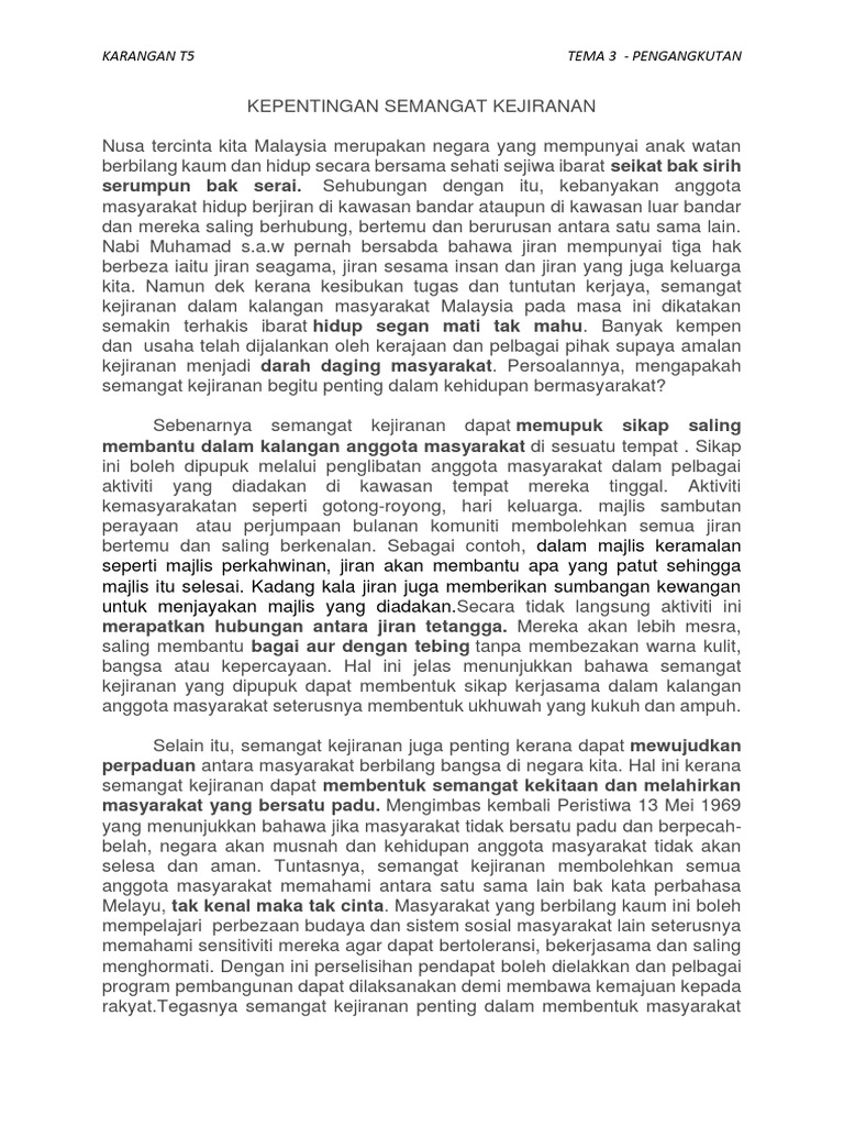 Murid tidak membuang masa memikirkan perkara yang hendak ditulis. Berat sama dipikul ringan sama dijinjing. Contoh Karangan Semangat Kejiranan Pt3.